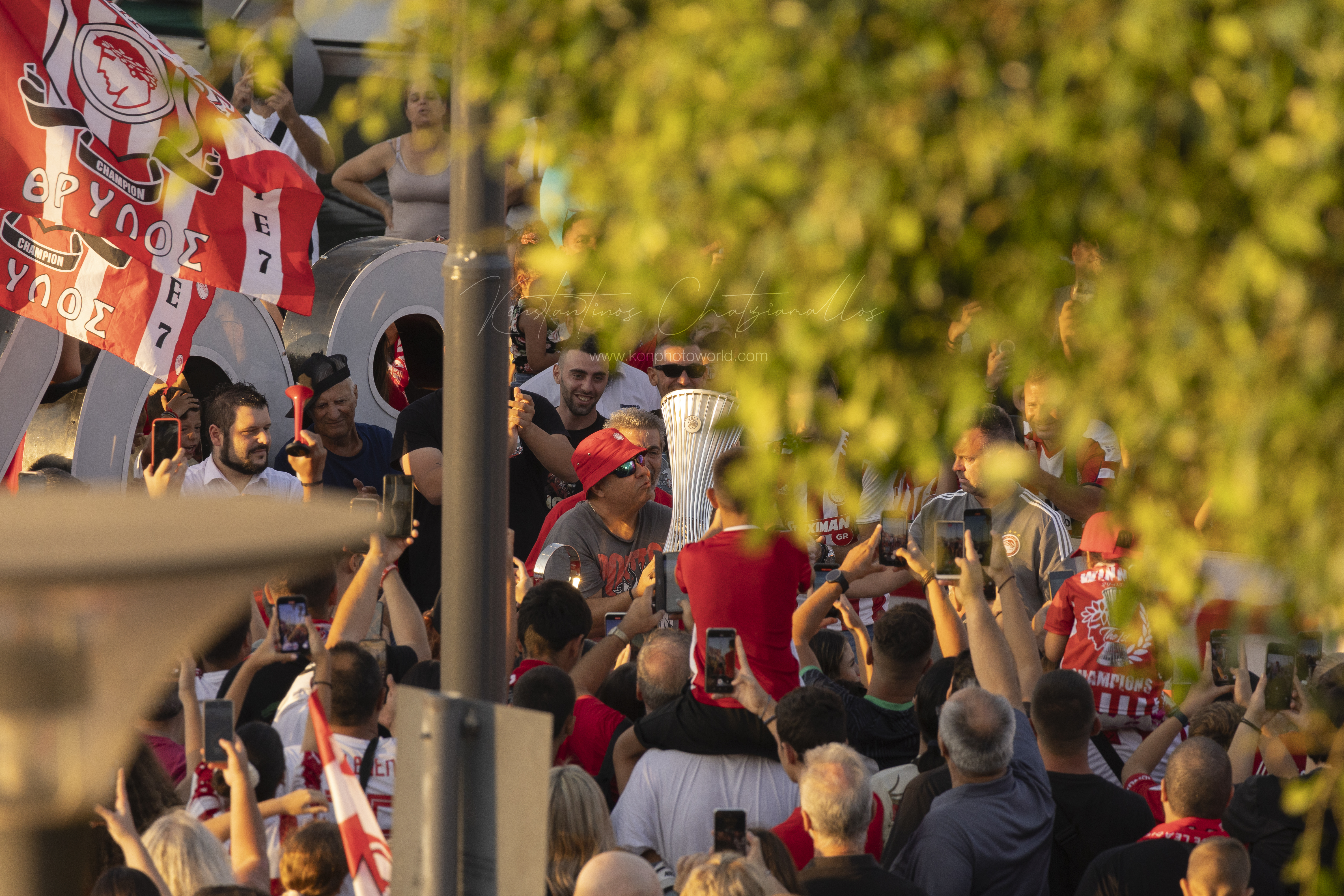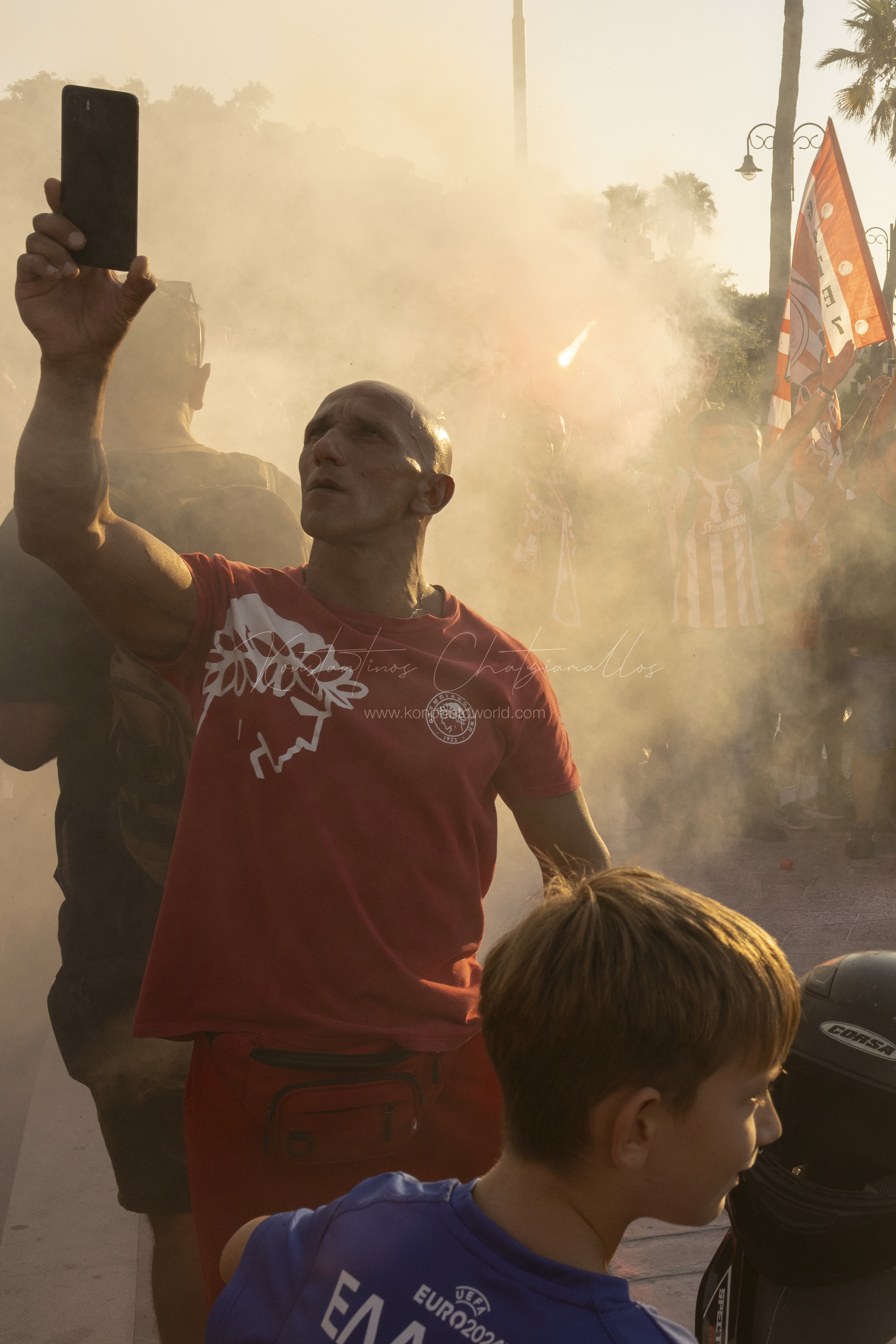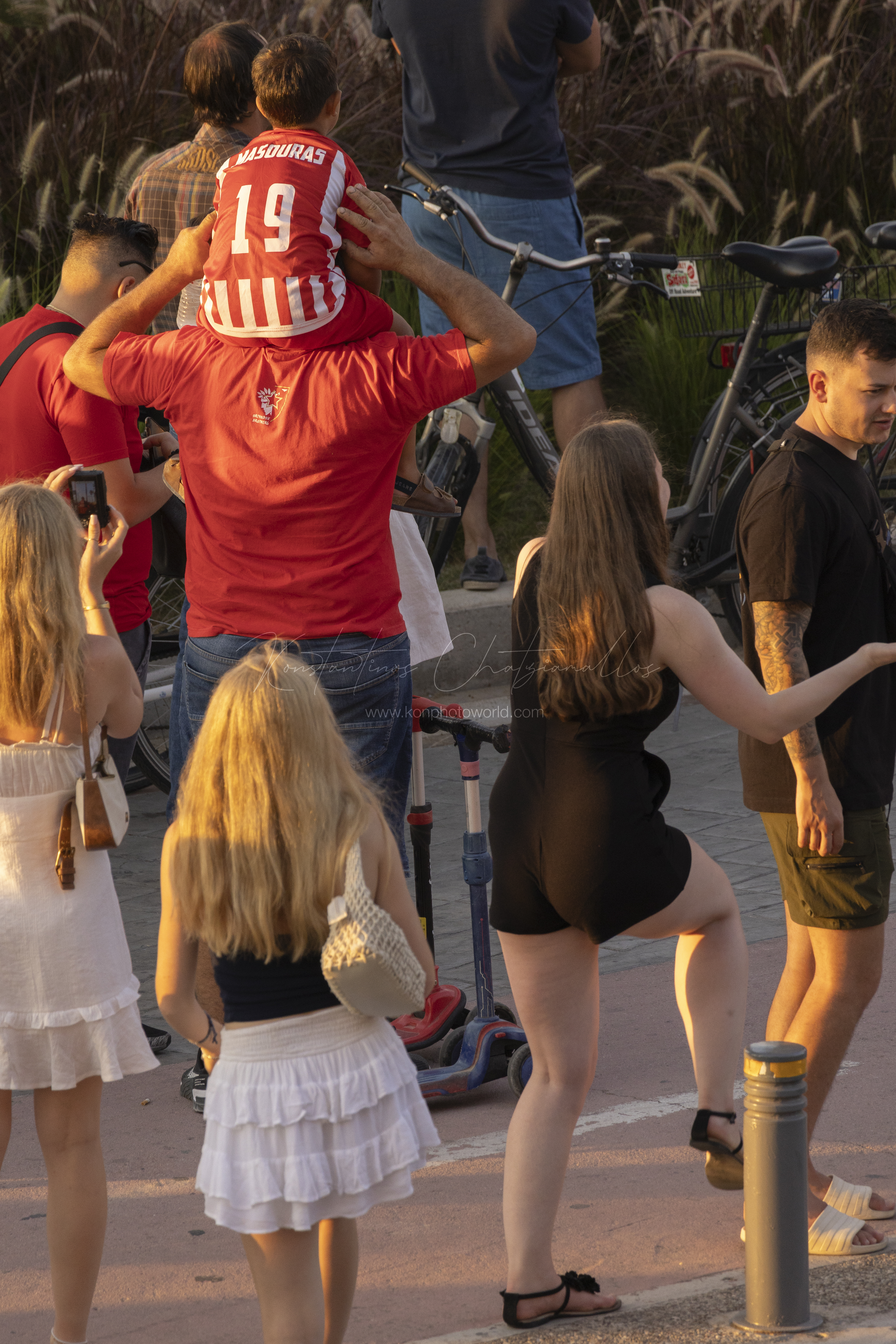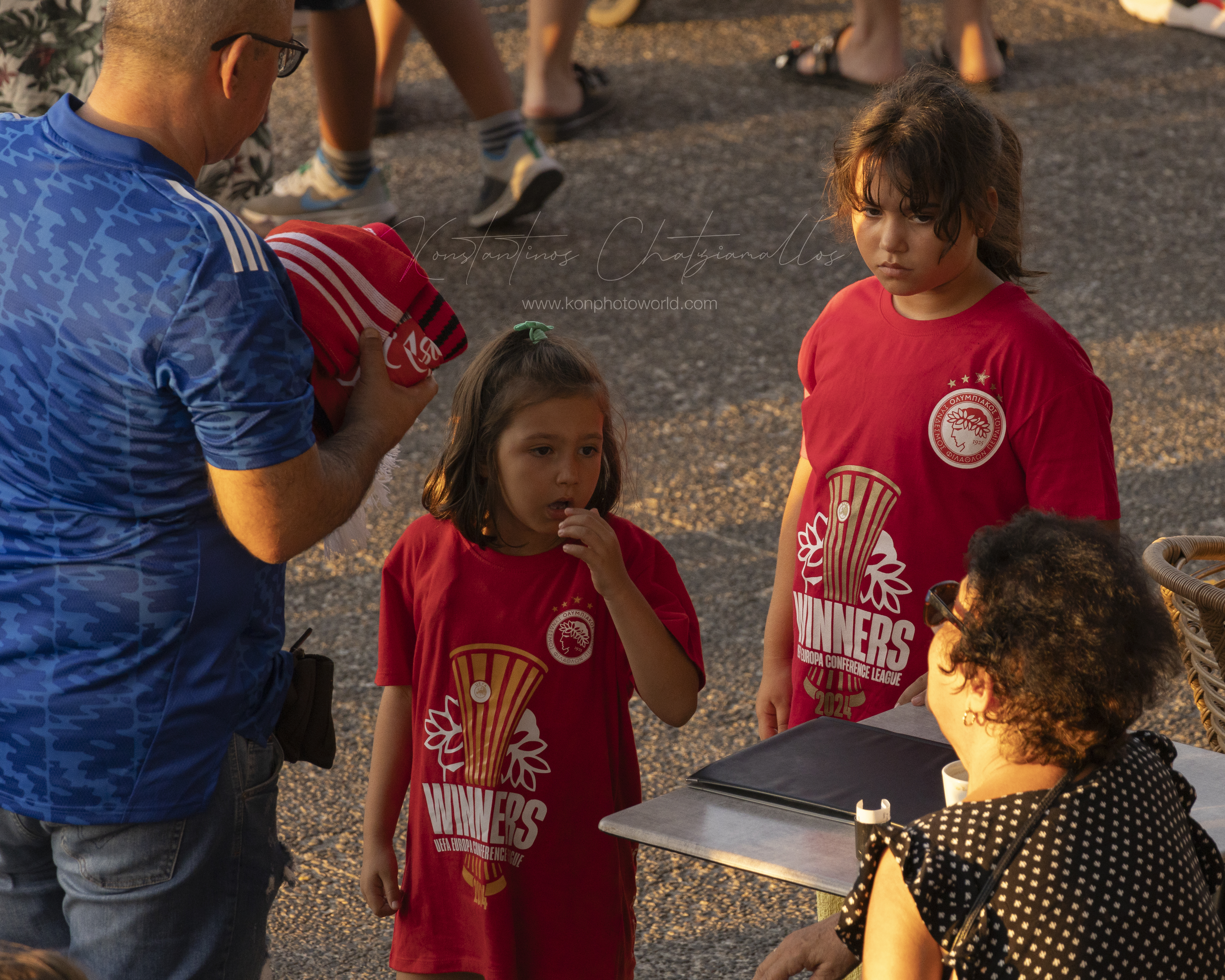 Φωτογραφίες που απεικονίζουν τον παλμό των φίλων του Ολυμπιακού Πειραιά κατά την υποδοχή και έκθεση, σε χώρο του λιμανιού της Κω, των πρώτων ευρωπαϊκών τροπαίων (Europa Conference League και Uefa Youth League) στην ιστορία του ποδοσφαιρικού τμήματος του συλλόγου (πρώτων και στην ιστορία του ελληνικού συλλογικού ποδοσφαίρου). Κόσμος και κοσμάκης, μικροί και μεγάλοι, με αθλητικά αλλά και γόβες, με καπνογόνα και σημαίες, μερικοί … στυλίτες, ακόμα και με αθλητικές φανέλες των Μάντσεστερ Γιουνάϊτεντ και … Σάντερλαντ!!! Όμορφες στιγμές, δυνατά συναισθήματα …