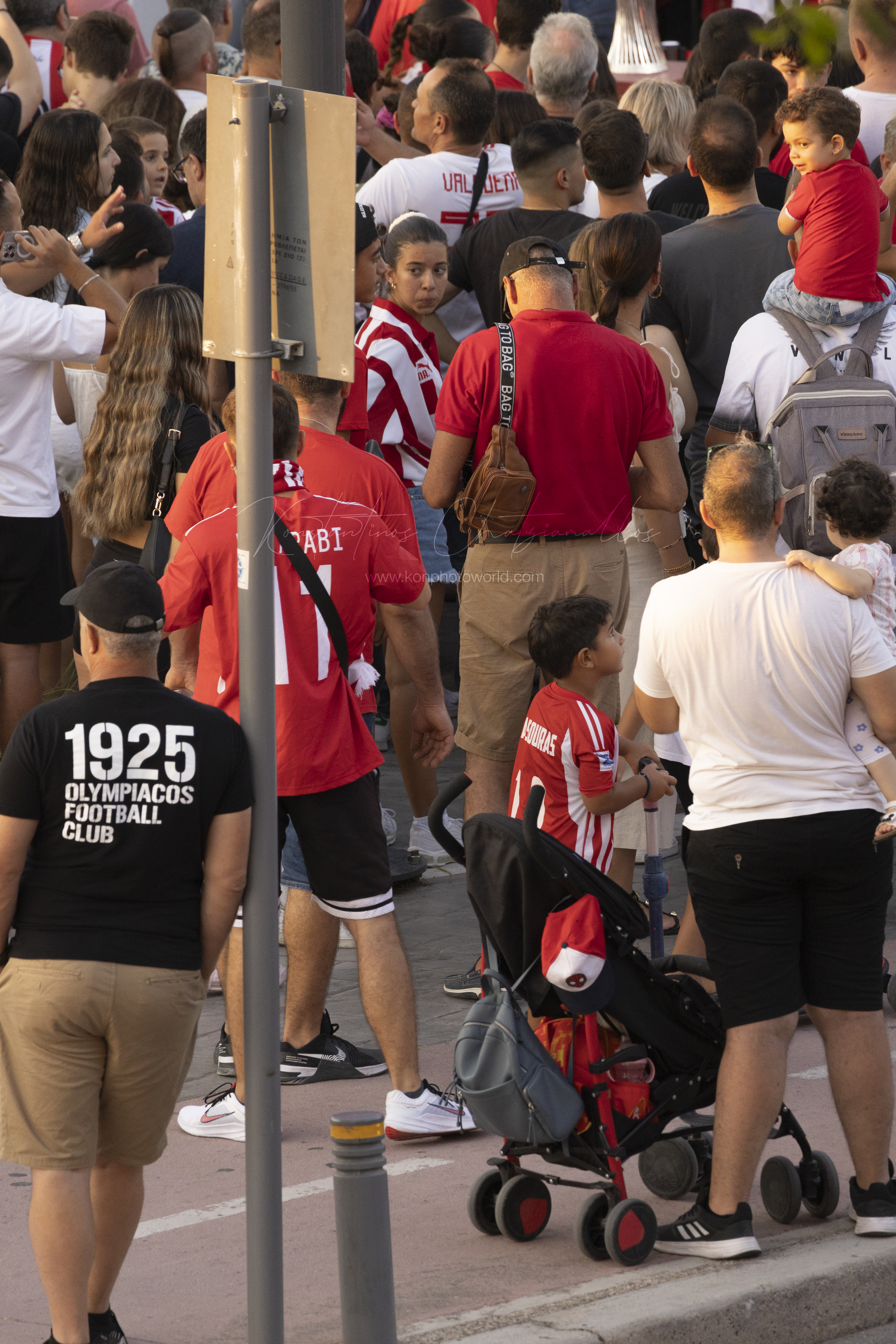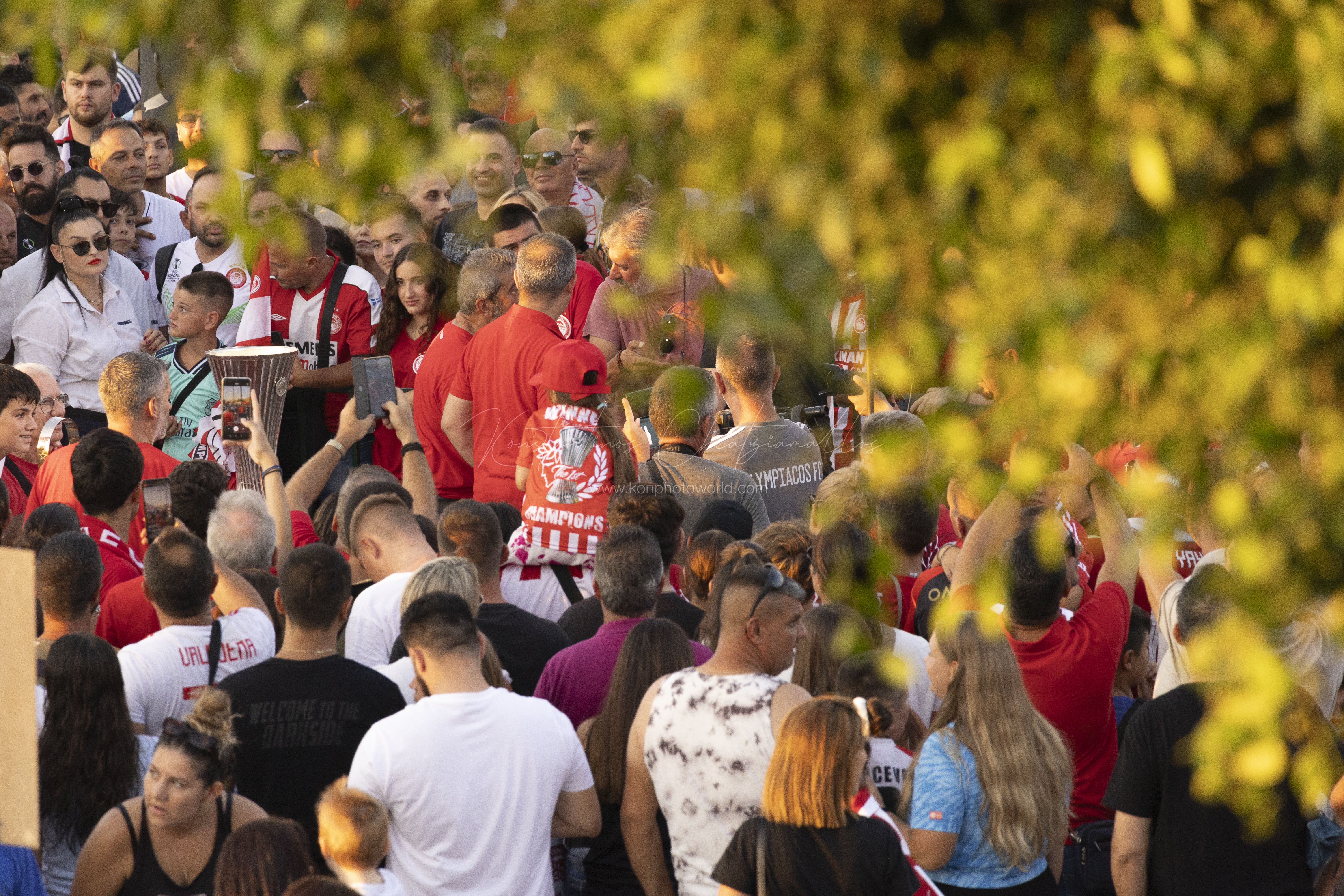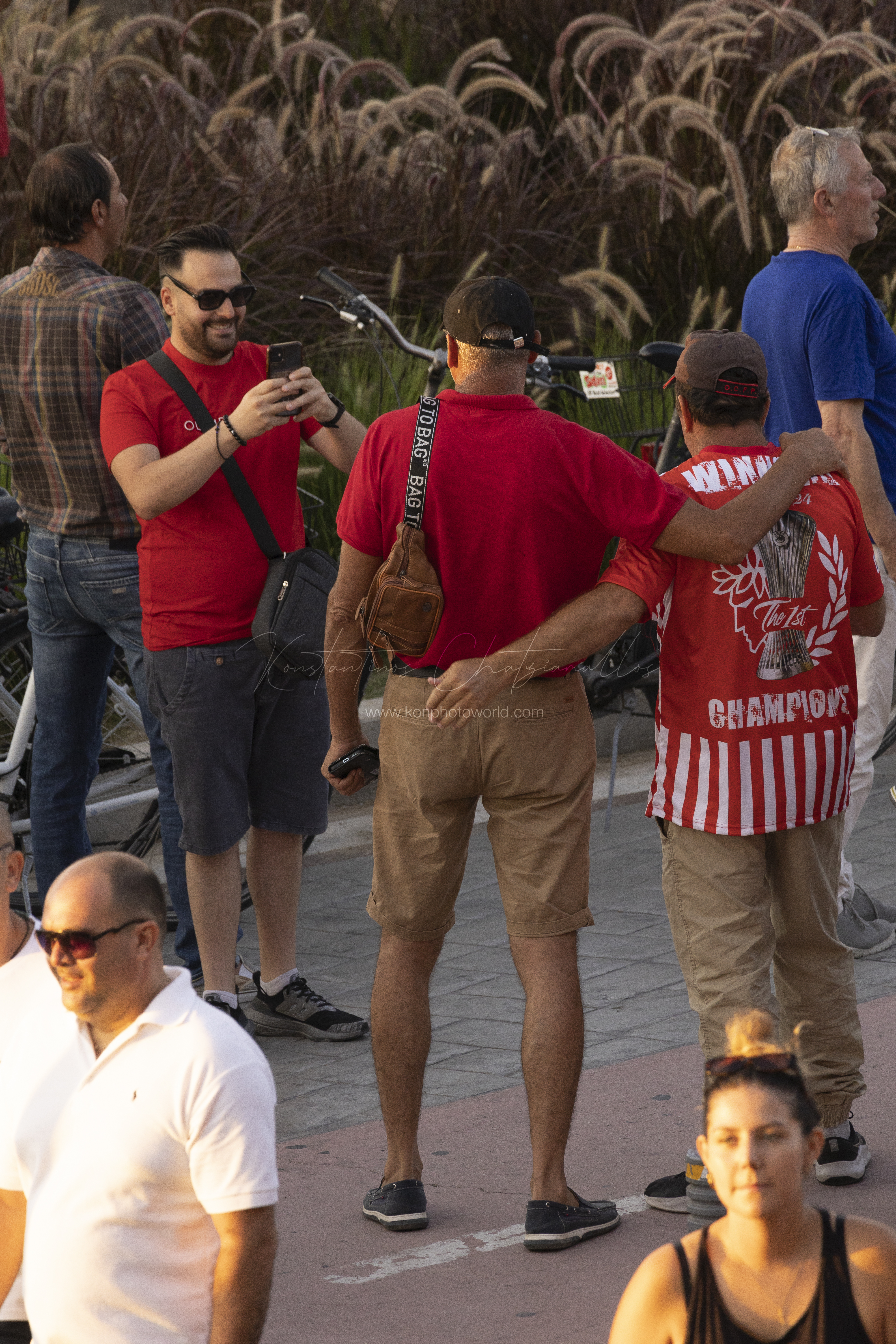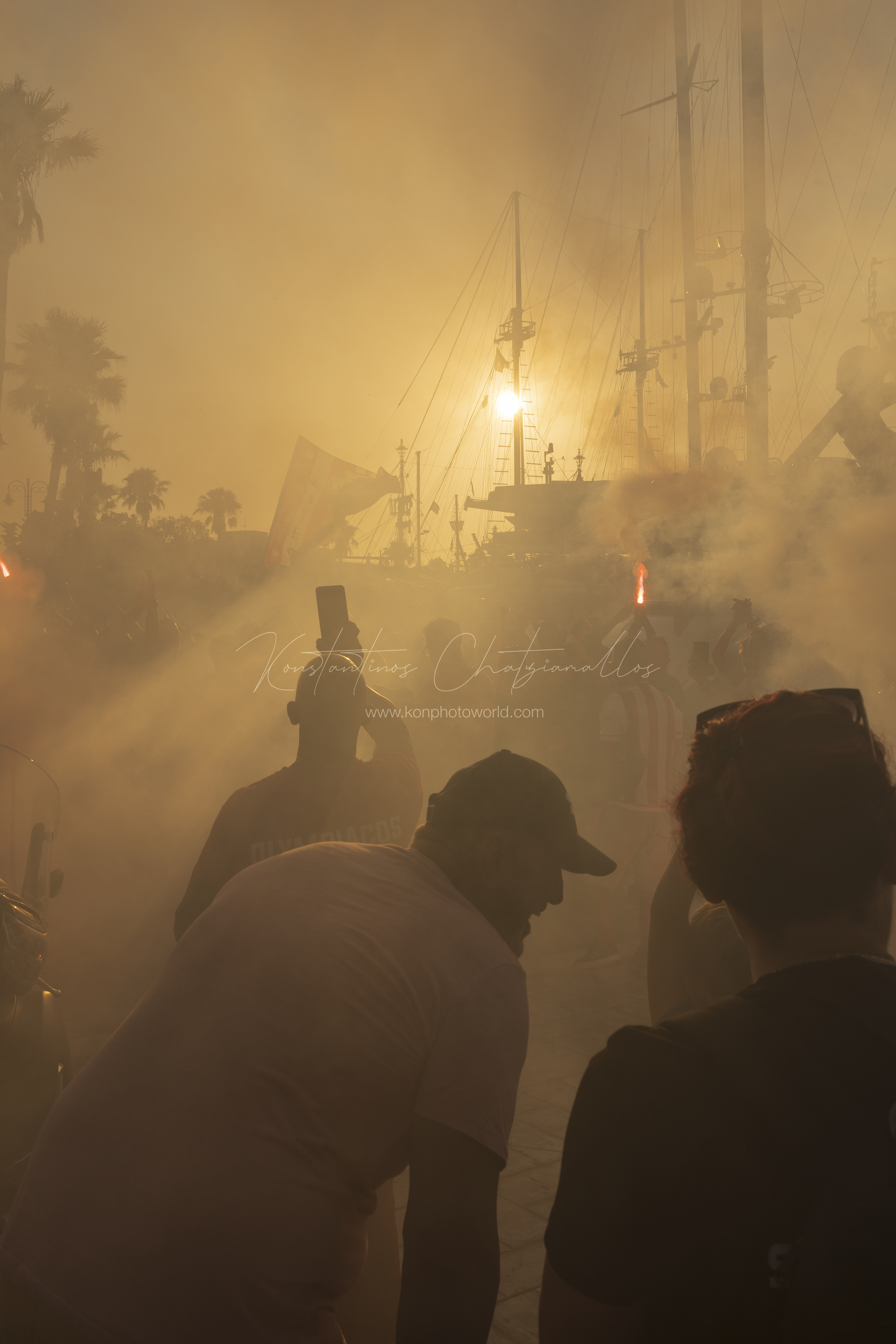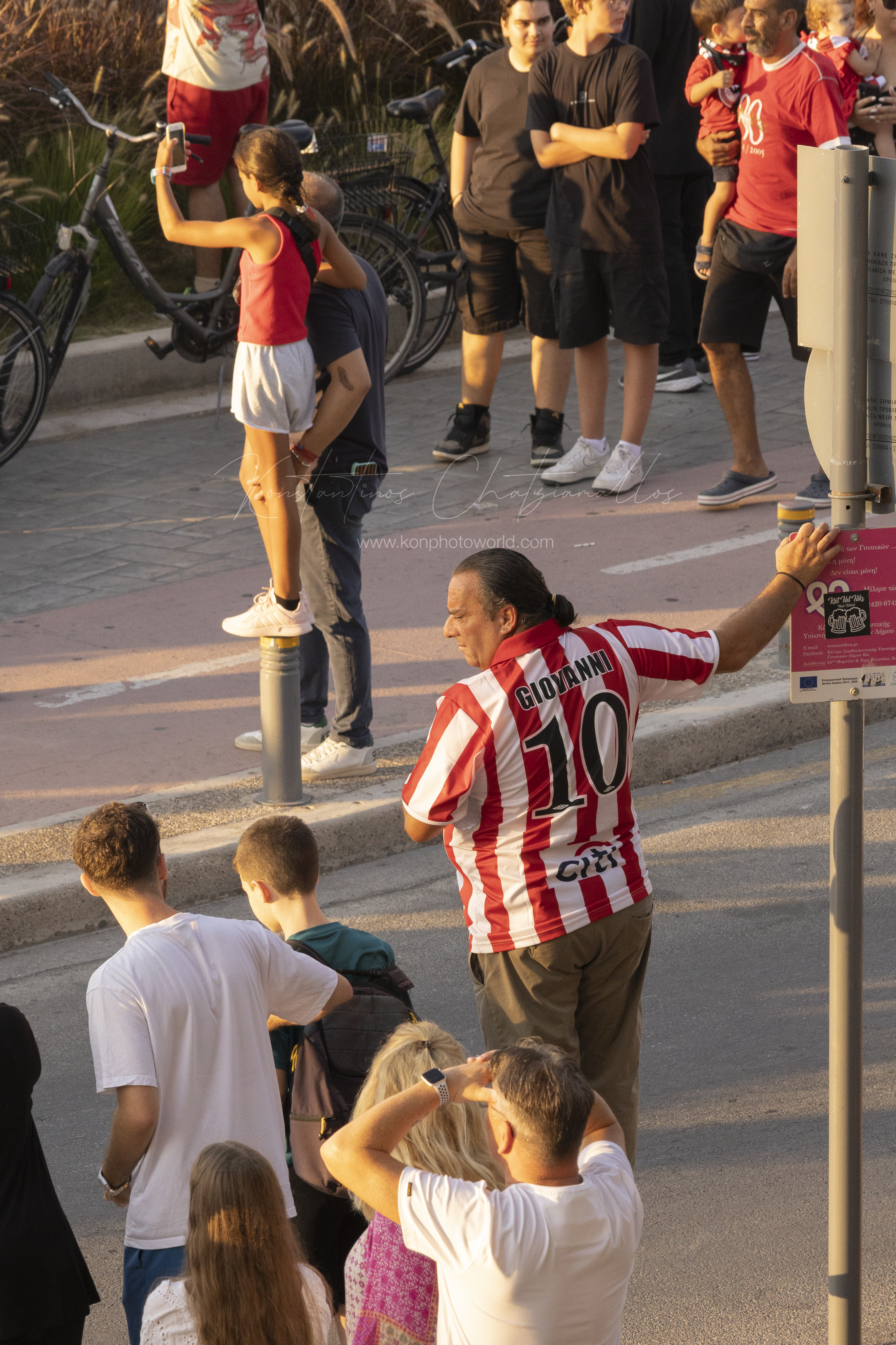 Φωτογραφίες που απεικονίζουν τον παλμό των φίλων του Ολυμπιακού Πειραιά κατά την υποδοχή και έκθεση, σε χώρο του λιμανιού της Κω, των πρώτων ευρωπαϊκών τροπαίων (Europa Conference League και Uefa Youth League) στην ιστορία του ποδοσφαιρικού τμήματος του συλλόγου (πρώτων και στην ιστορία του ελληνικού συλλογικού ποδοσφαίρου). Κόσμος και κοσμάκης, μικροί και μεγάλοι, με αθλητικά αλλά και γόβες, με καπνογόνα και σημαίες, μερικοί … στυλίτες, ακόμα και με αθλητικές φανέλες των Μάντσεστερ Γιουνάϊτεντ και … Σάντερλαντ!!! Όμορφες στιγμές, δυνατά συναισθήματα …