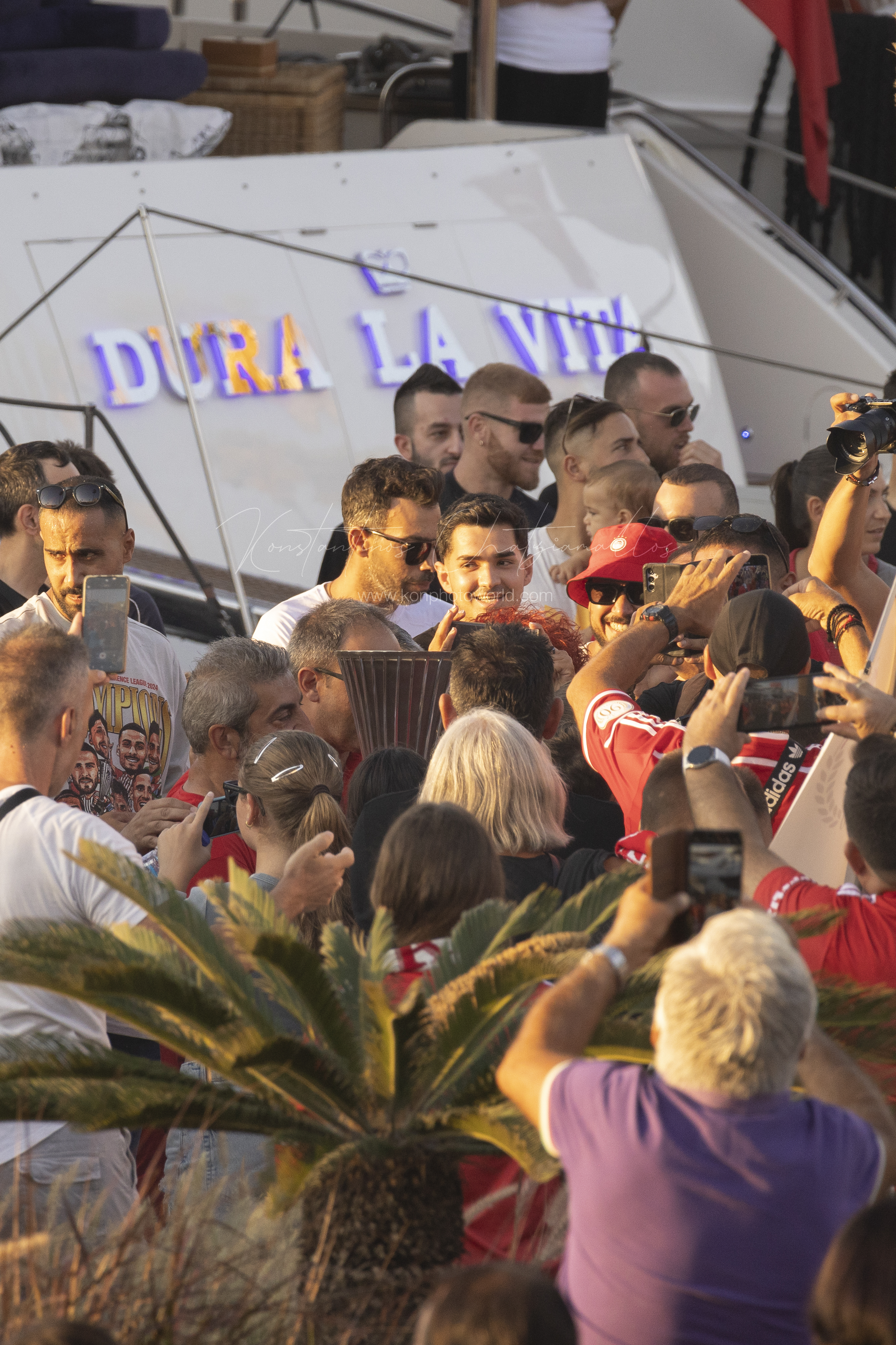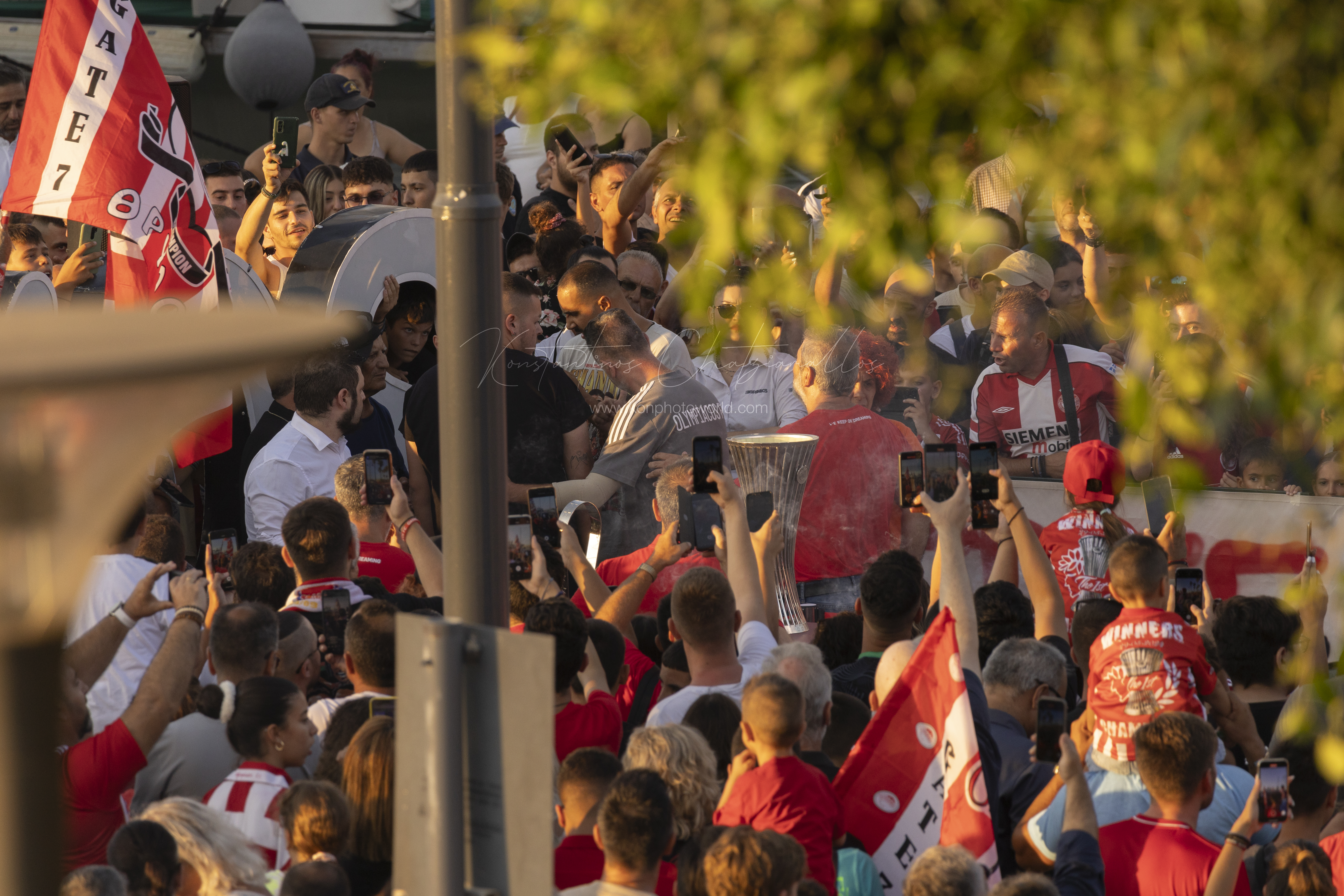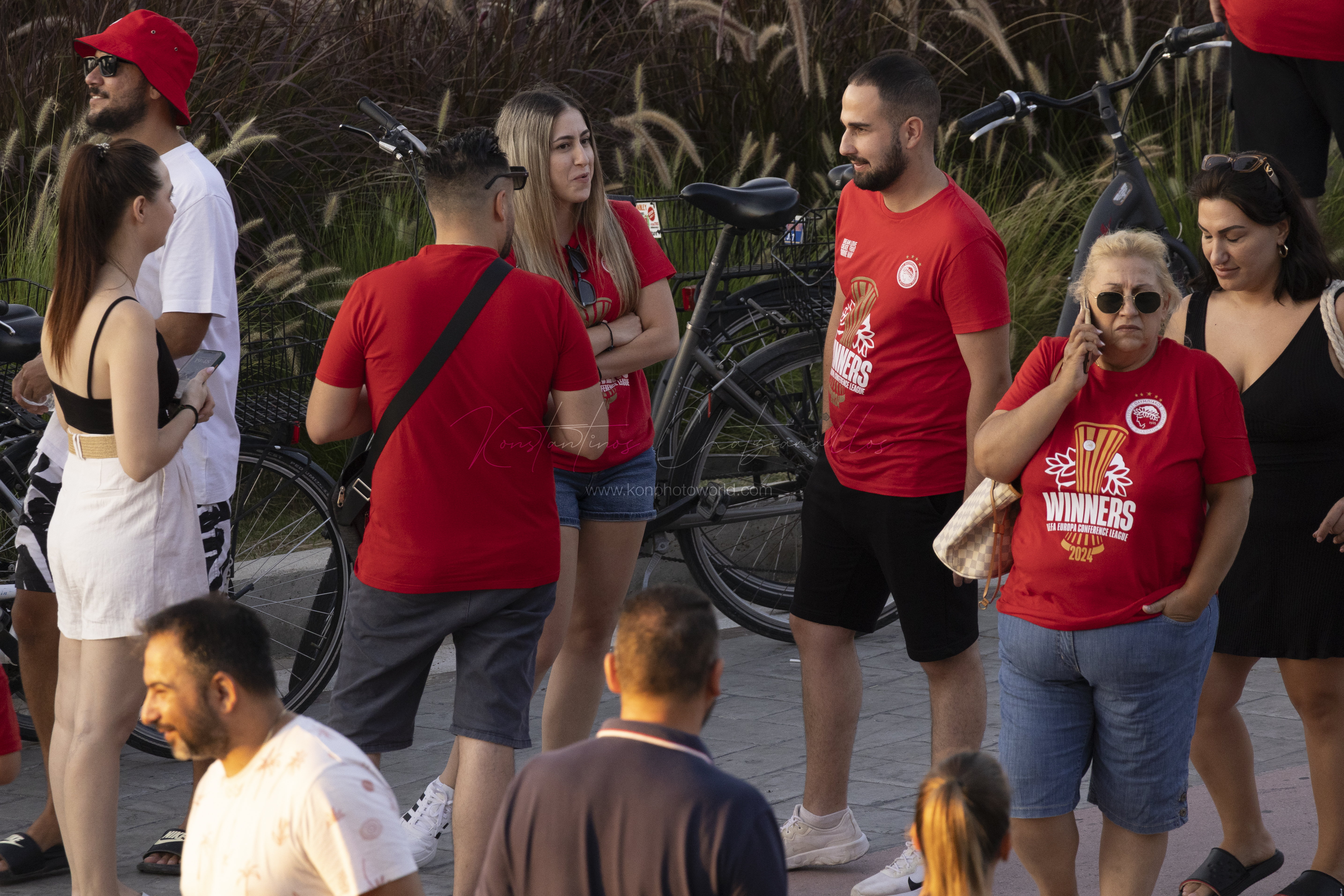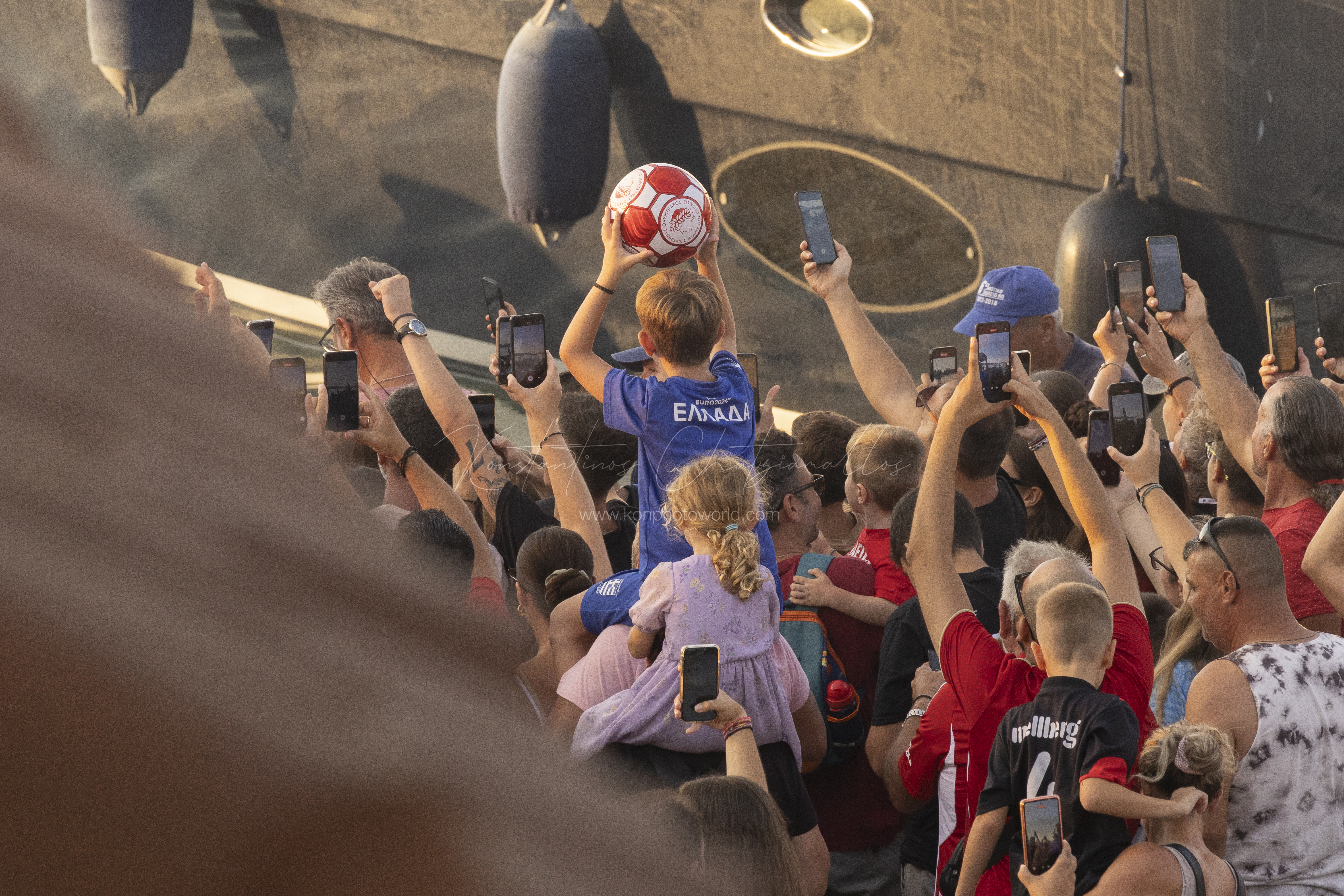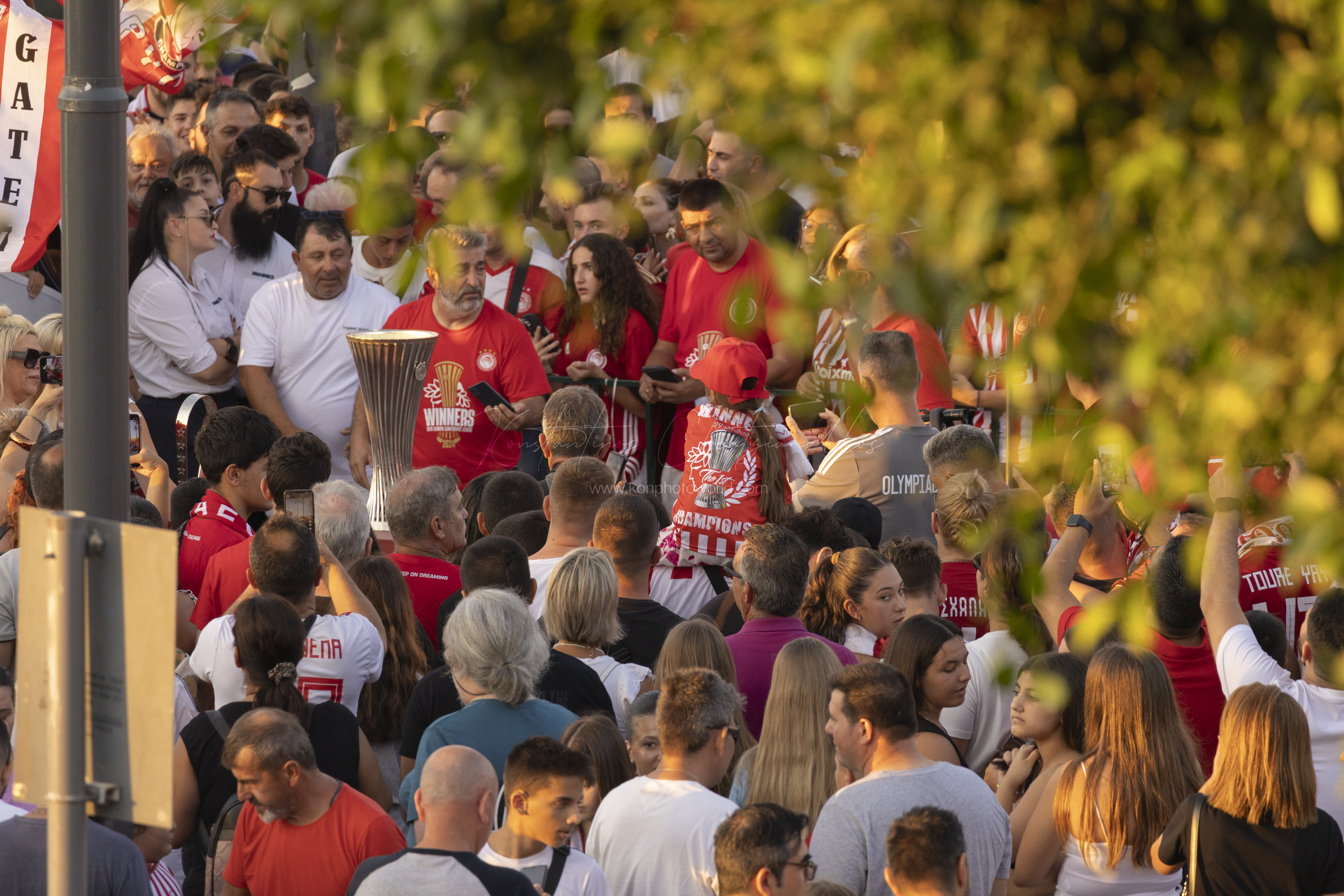 Φωτογραφίες που απεικονίζουν τον παλμό των φίλων του Ολυμπιακού Πειραιά κατά την υποδοχή και έκθεση, σε χώρο του λιμανιού της Κω, των πρώτων ευρωπαϊκών τροπαίων (Europa Conference League και Uefa Youth League) στην ιστορία του ποδοσφαιρικού τμήματος του συλλόγου (πρώτων και στην ιστορία του ελληνικού συλλογικού ποδοσφαίρου). Κόσμος και κοσμάκης, μικροί και μεγάλοι, με αθλητικά αλλά και γόβες, με καπνογόνα και σημαίες, μερικοί … στυλίτες, ακόμα και με αθλητικές φανέλες των Μάντσεστερ Γιουνάϊτεντ και … Σάντερλαντ!!! Όμορφες στιγμές, δυνατά συναισθήματα …